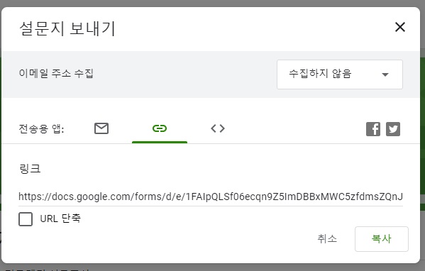 설문지 보내기에서 복사를 하시기 바랍니다. 그 복사된 주소를 인터넷 주소 입력창에 붙여두고 엔터를 치시기 바랍니다.