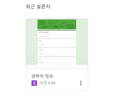 저는 연락처 정보를 필요로 하니 그 폼(설문지)으로 만들어 보겠습니다.