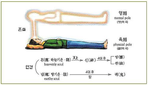 신도는 복잡다단하여 단순하지가 않다. 정상적인 죽음은 저승(명부사자)가 오게 되어 저승으로 안내하지만 비 정상적인 죽음(객사, 사고사 등등)은 갑자기 당하게 되면 혼은 신이 되어 지상에 머물게 된다. 그것이 넋이 있는 육체가 묻힌 근처에 있다. 즉 귀과 신이 같이 있는 것이다. 그래서 귀신이라 한다. 그들은 억울함 호소하고자, 원한을 갚고자, 머무르면 사람에게 접근하여 빙의가 되기도 하는 현상이다. 이를 해결하고자 한다면 자손이나 가족은 그 망자의 원한을 달래고 천도식을 통하여 천상으로 그 영신을 올려 보내야 한다. 이는 매우 중요한 의식이다. 이를 통하여 원한 맺힌 귀신들이 지상에 없도록 노력해야 한다. 그래야 객사와 사고사도 줄어든다. 그들이 모여있는 곳이 주로 사고 많은 곳이다. 그래서 더욱 그런 장소는 조심해야 한다.