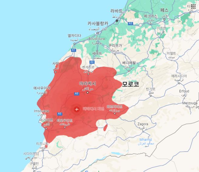2023.09.08일 지진 6.8 규모로 모로코(Morocco) 마라케시(Marrakech)에서 발생하였다.
