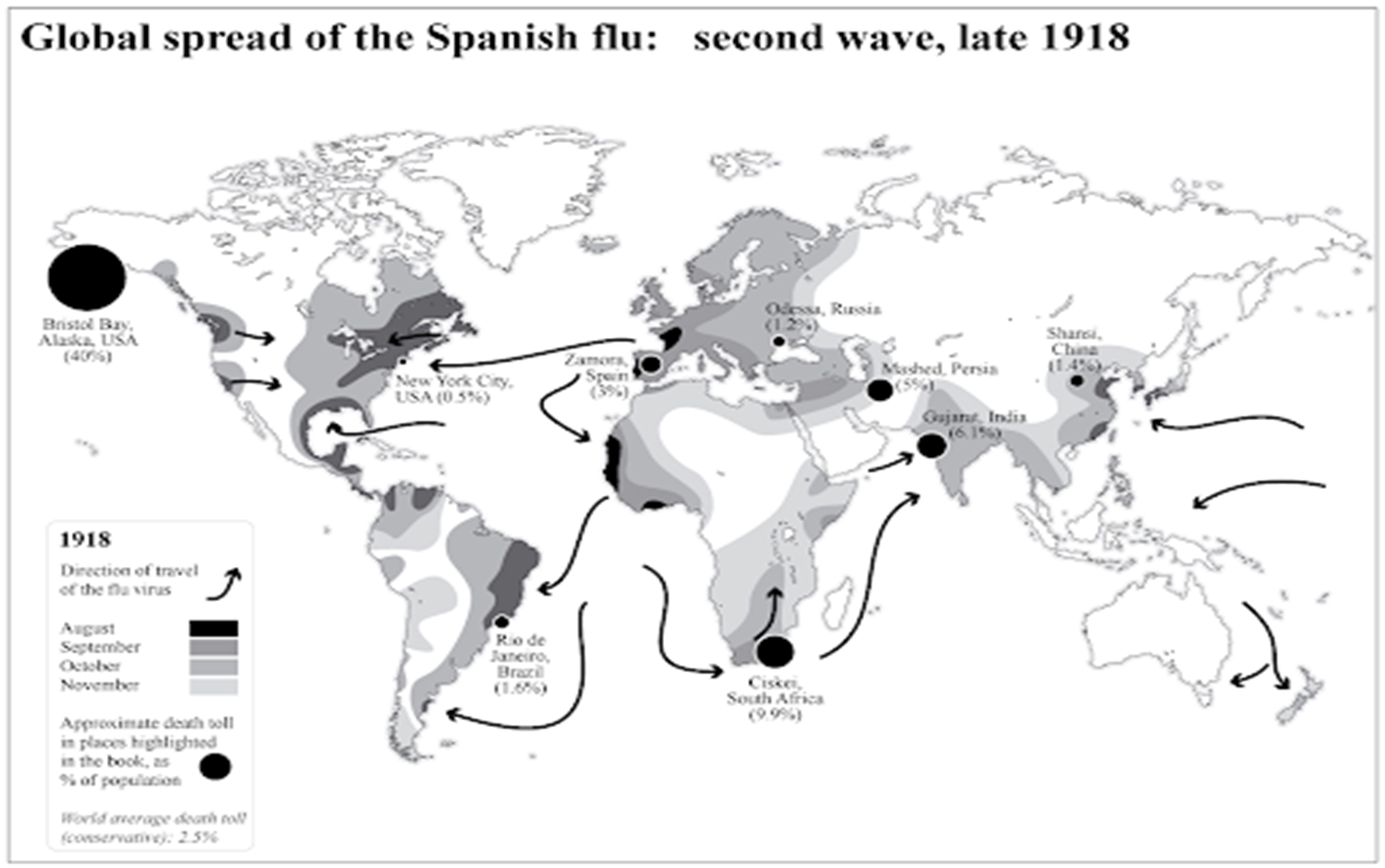 스페인 독감은 전세계로 전파 감염된 팬데믹 전염병이었다.