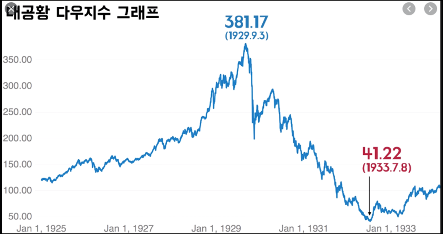 1929년 10월 24일 뉴욕 주가 대폭락으로 현실이 되었다.