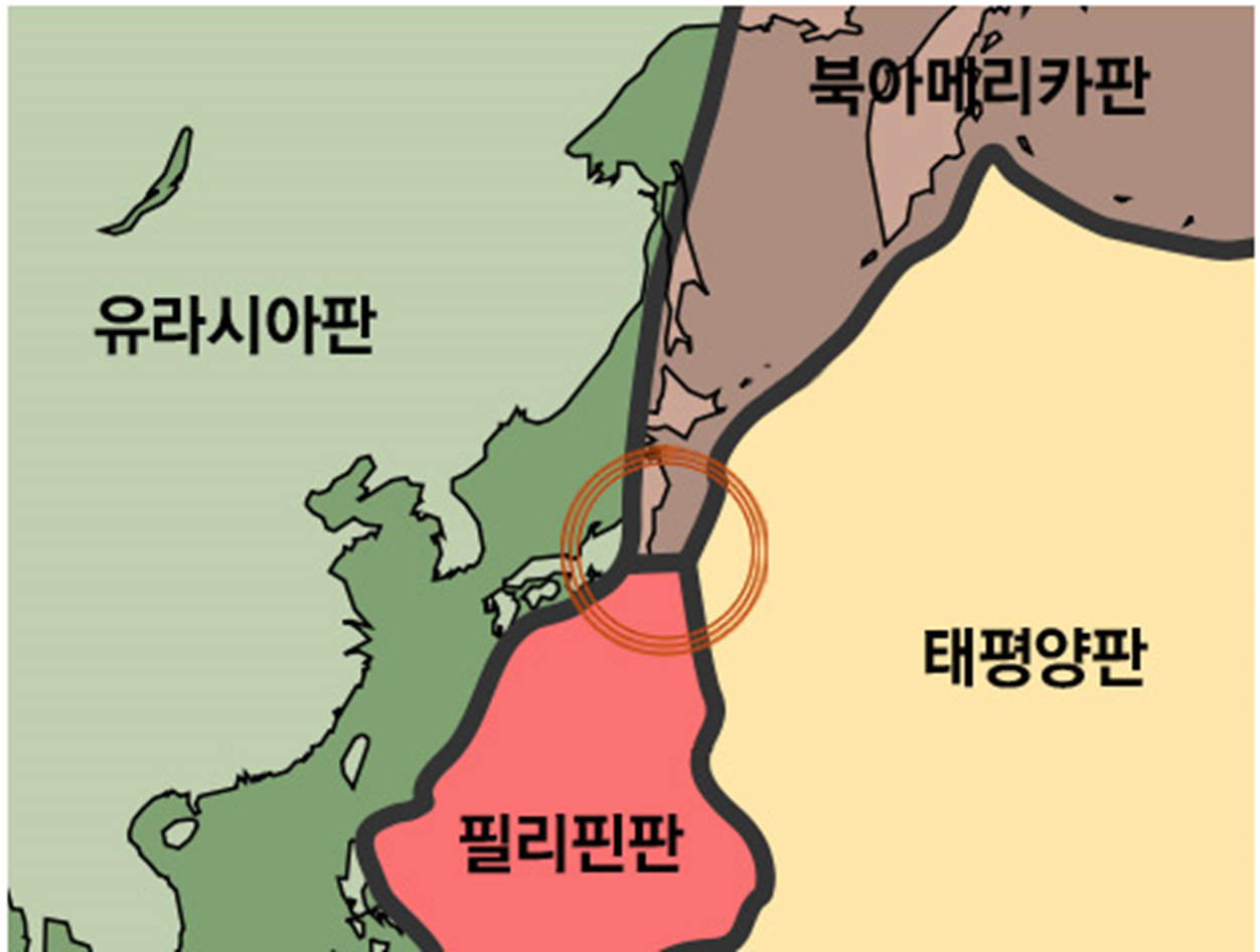 일본은 4개의 지각판이 만나는 곳으로 지진이 빈번한 곳이다.