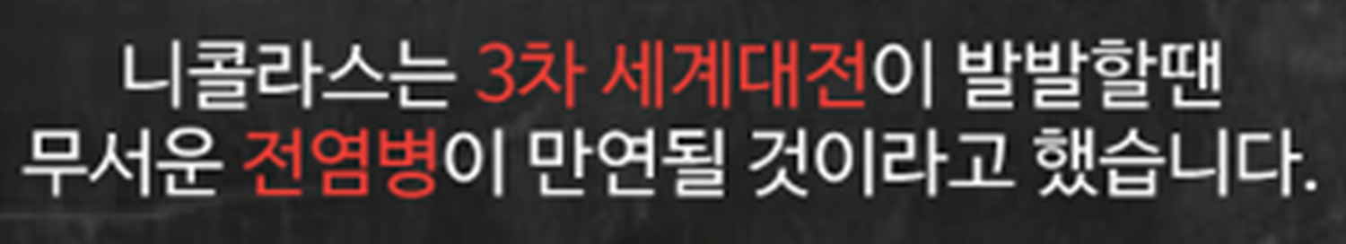 3차 세계대전이 발발할땐 무서운 전염병이 만연될 것’이란 예언은 전염병이 만연되어 있을 때 전쟁이 발발한다는 의미이다.