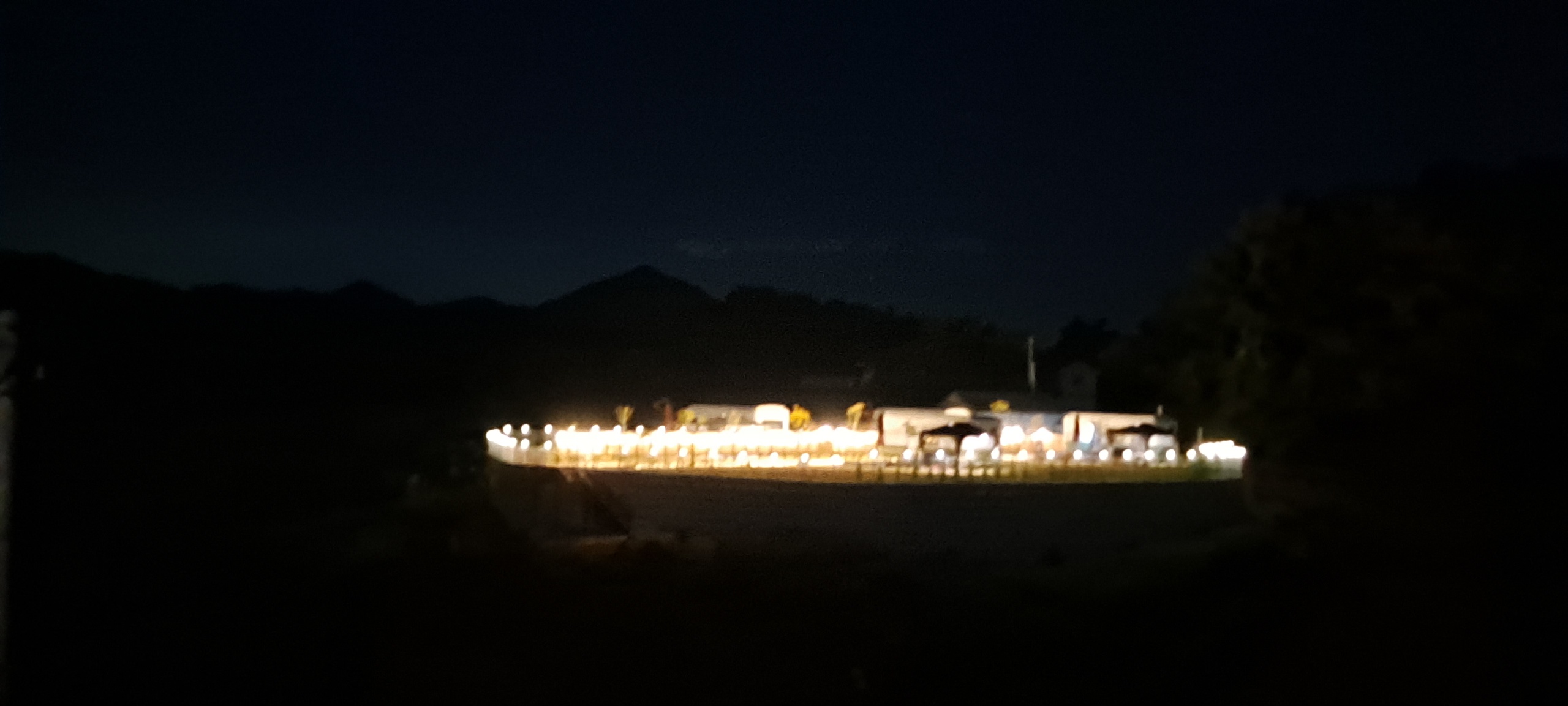 밤에 멀리서 바라본 청풍 레이크 카라반