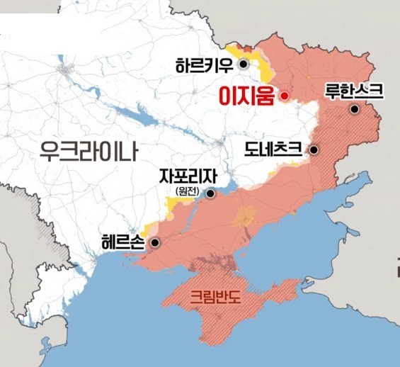 지도에서 보듯이 하르키우는 우크라이나 동북방향에 있는 제2의 도시이다. 그런데 러시아와 국경에서 멀지 않다.