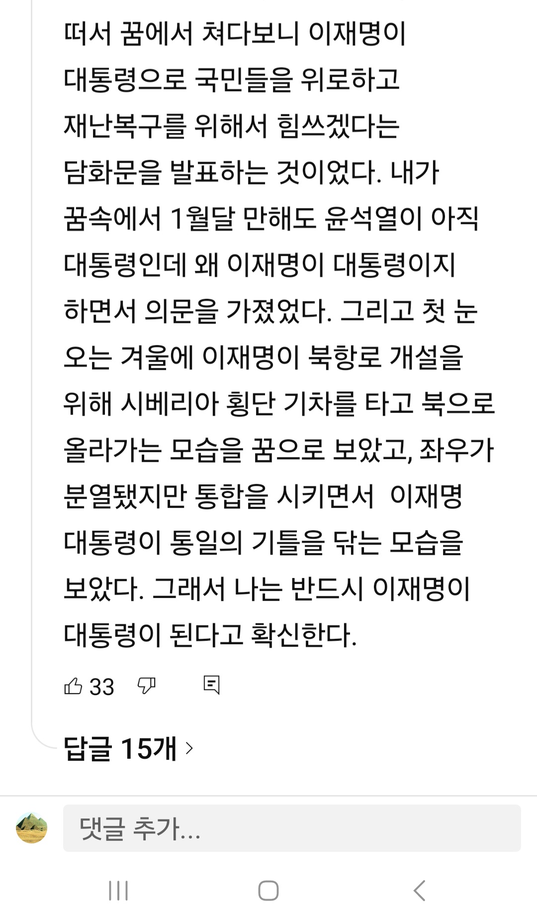 이런 영상에 달린 댓글이 주목을 받고 있는데 그 출처는 글쓴이의 꿈이다. 그래서 아직 시간이 다가오지 않았기에 선몽인지 거짓꿈인지 검증하고 싶어 캡쳐 화면을 올려보고 검증을 해 보고자 한다. (2025.5.5일 어린이날 밤11:00)