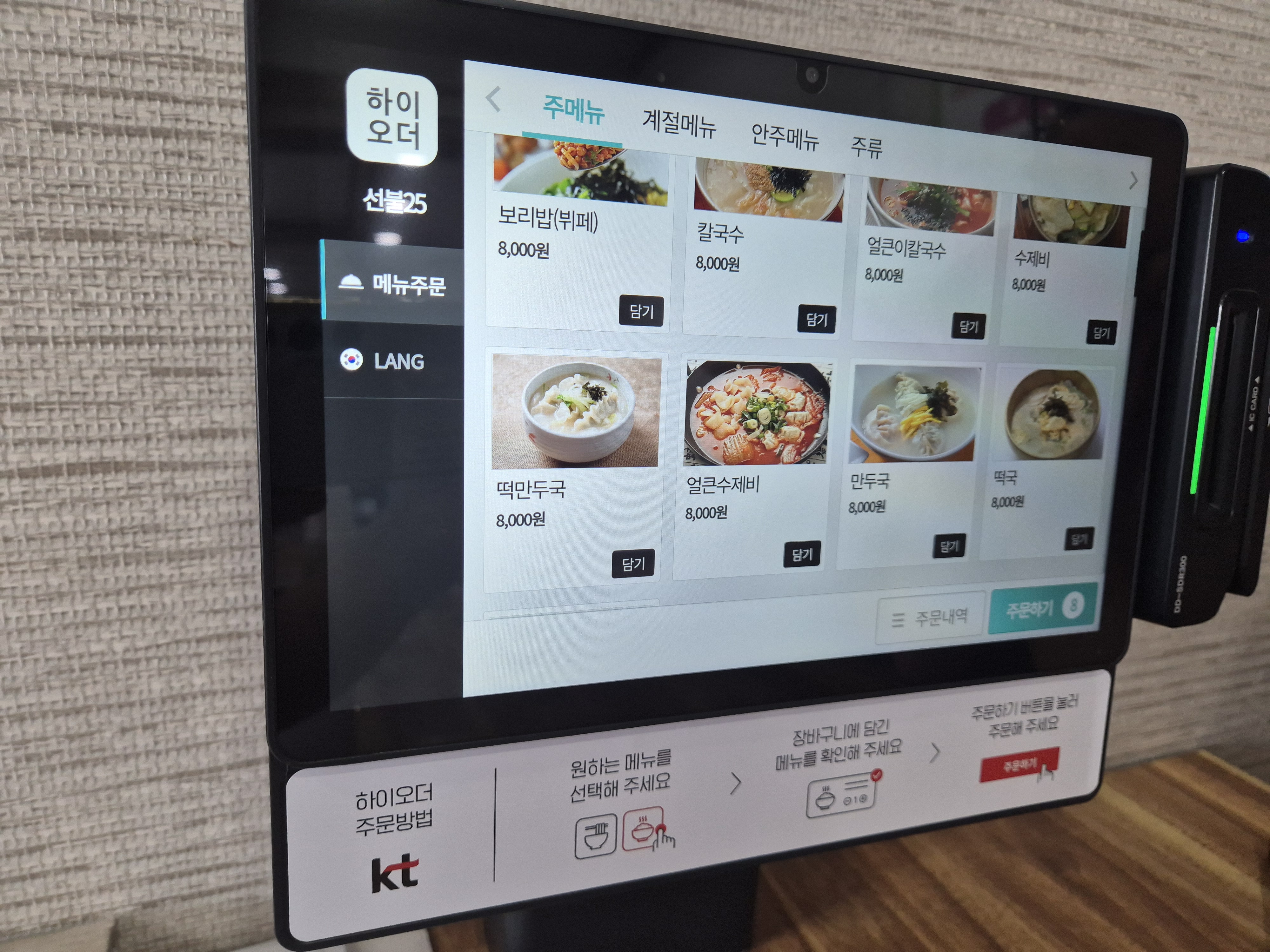 최신 스마트 기기인 테이블 오더를 주식회사 KT 제품으로 잘 설치해 있어서